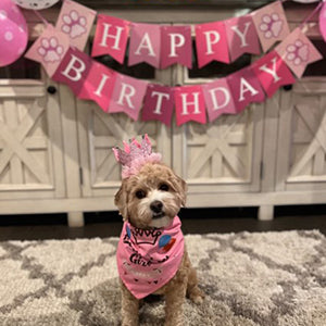 Ownpets Cute Dog Birthday Outfit Set, Princess Puppy Tutu Skirt with Pink Crown, Pearl Necklace, Double Sided Saliva Towel & Birthday Banner for Puppy, Dog, Cat Girl Birthday Parties